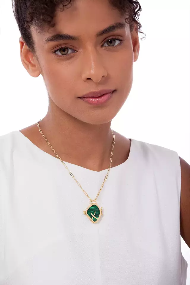 Uma joia que transforma o essencial em protagonismo. Assim é o Colar Alfabeto Maria Dolores, que nasce como um relicário folheado a Ouro contemporâneo, pensado para ser tão versátil quanto pessoal. O pingente, em metal vazado e formato orgânico, traz a letra L sobreposta a uma pedra, criando um símbolo delicado e de presença marcante. O desenho da letra foi desenvolvido com uma tipografia única, desenvolvida por Maria Dolores especialmente para a Coleção Expressão. Com estrutura funcional e criativa, o pingente se abre como um relicário: a capa em metal vazado possui fecho especial que garante segurança, e seu interior acomoda as pedras em formato de chapa orgânica, que podem ser trocadas conforme o momento. Ao fechar, a letra se sobrepõe à pedra escolhida, criando uma nova combinação de cor, significado e intenção. Cada peça acompanha cinco chapas de pedras: Feldespato Vermelho, Haulita Turquesa, Obsidiana Preta, Malaquita e Ágata Cinza Metalizada, cada uma com cor, textura e simbologia únicas. A corrente média em malha Cartier folheada a Ouro tem extensor com ponteira personalizada com a mesma letra do pingente, e pode ser usada de forma tradicional ou com o charme da letra ajustada na lateral. Mais do que uma joia de design, o Colar Alfabeto simboliza intenção, identidade e memória. Um presente com significado, uma escolha que acompanha o tempo e conta uma história.